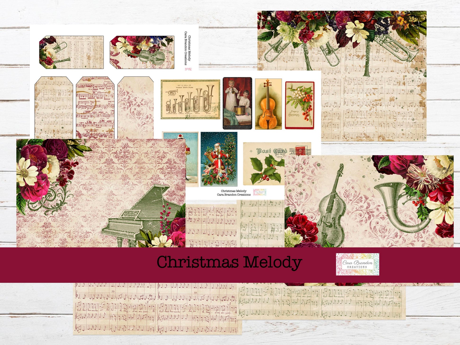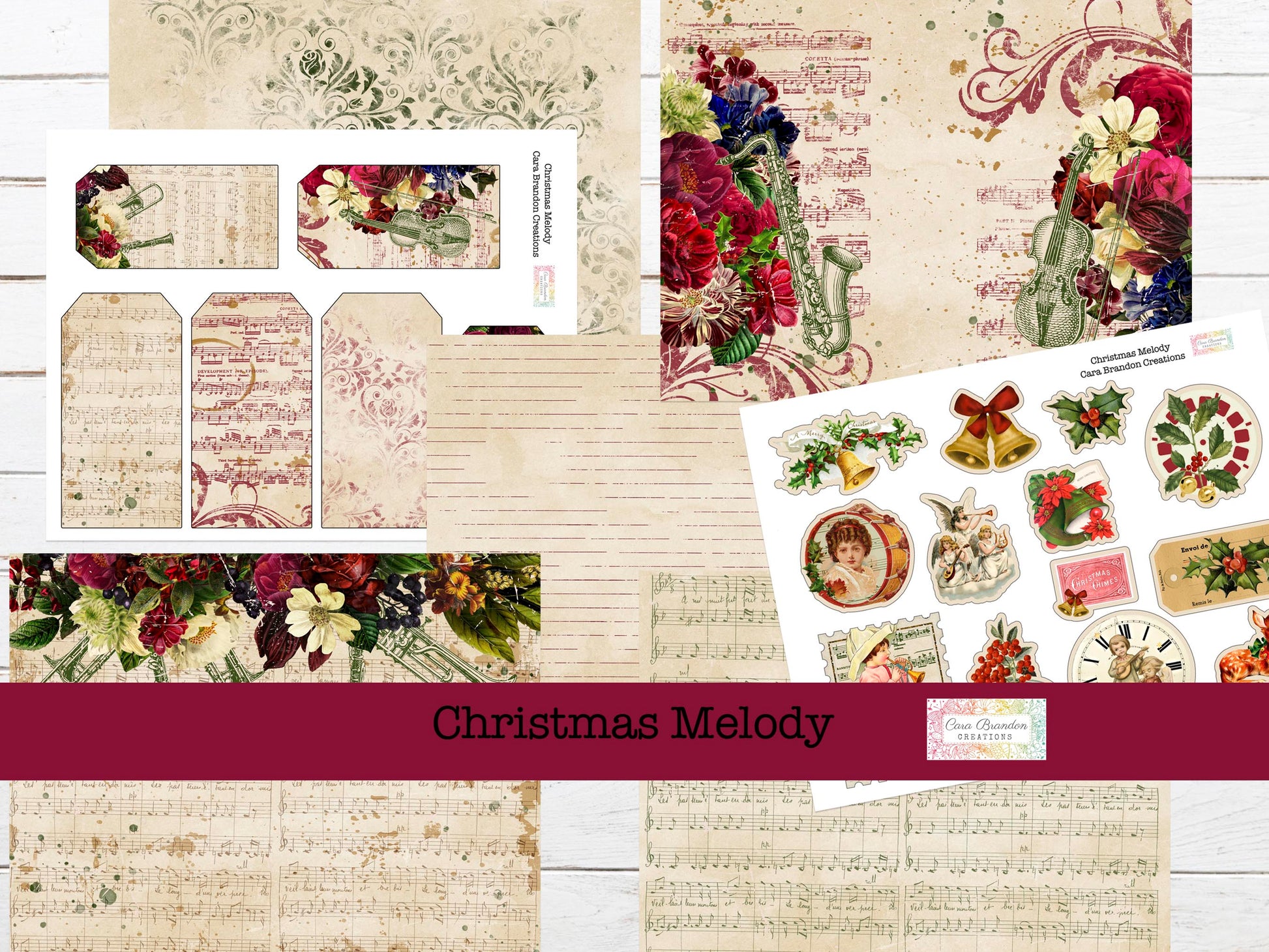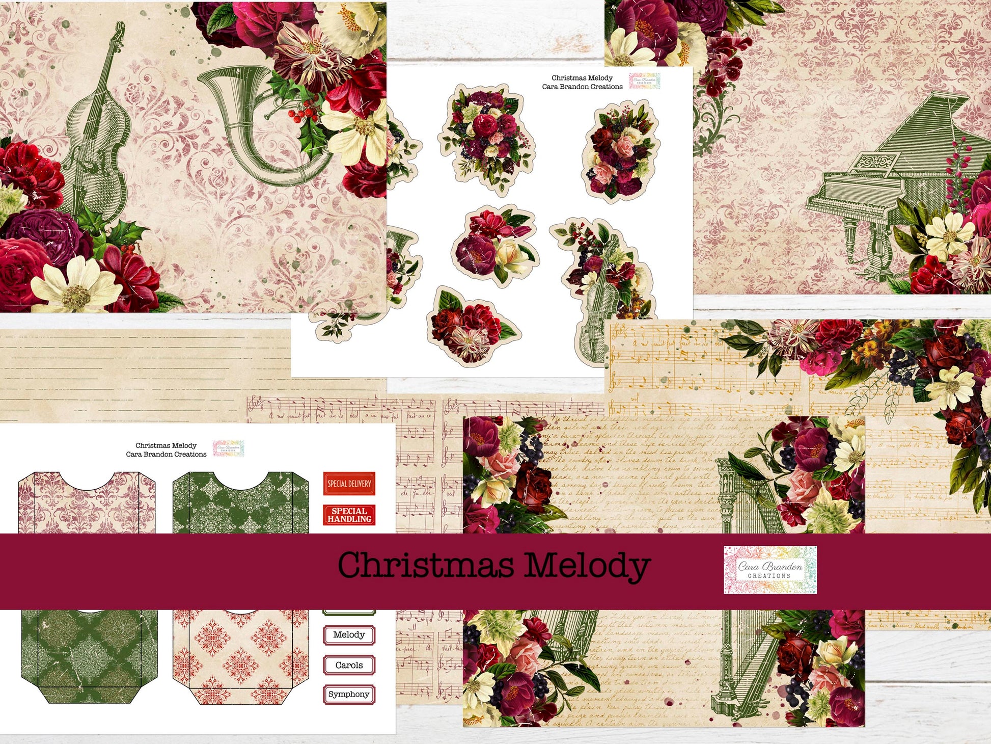 Christmas Melody is a mix of beautiful florals and musical instruments packed in a 17 page digital junk journal kit.