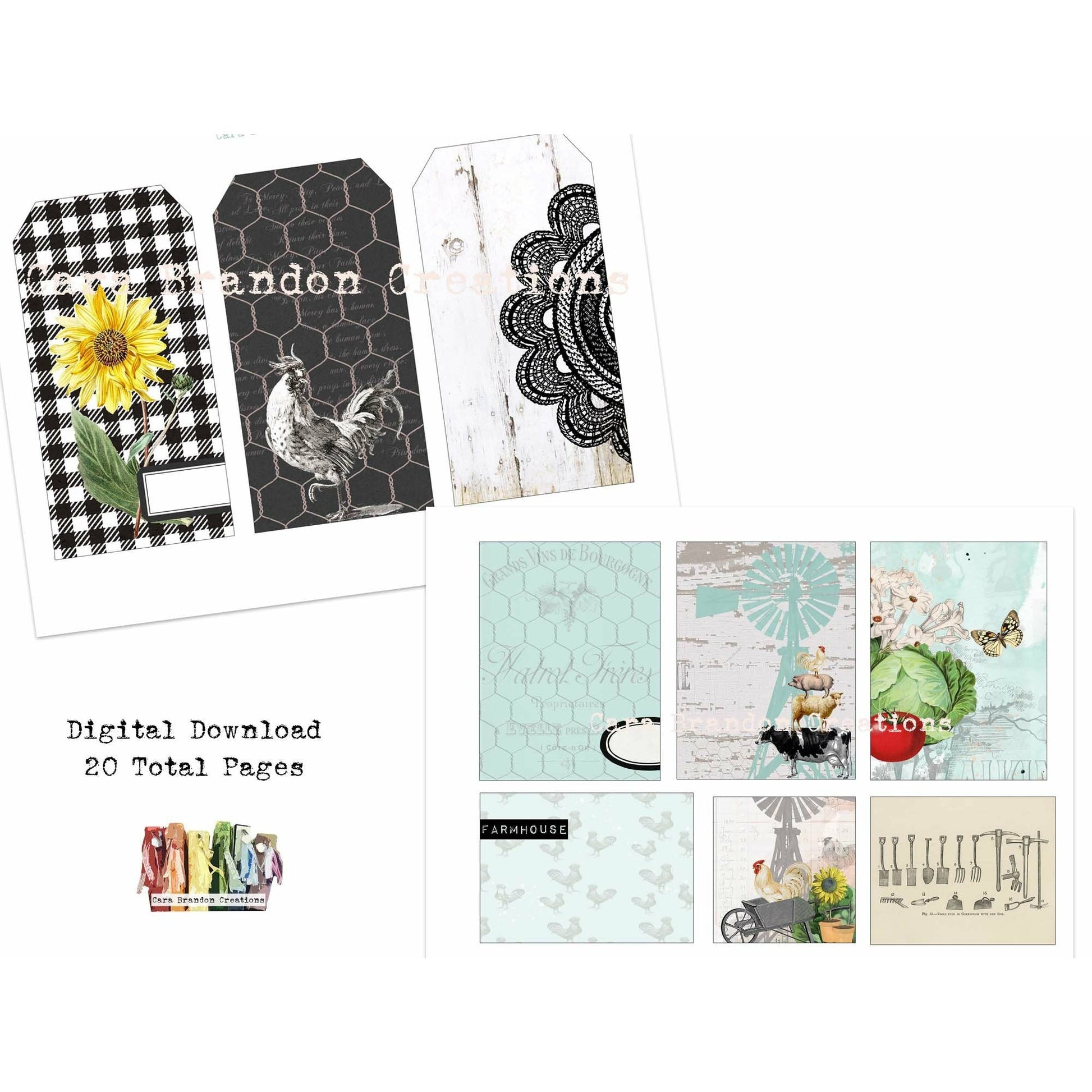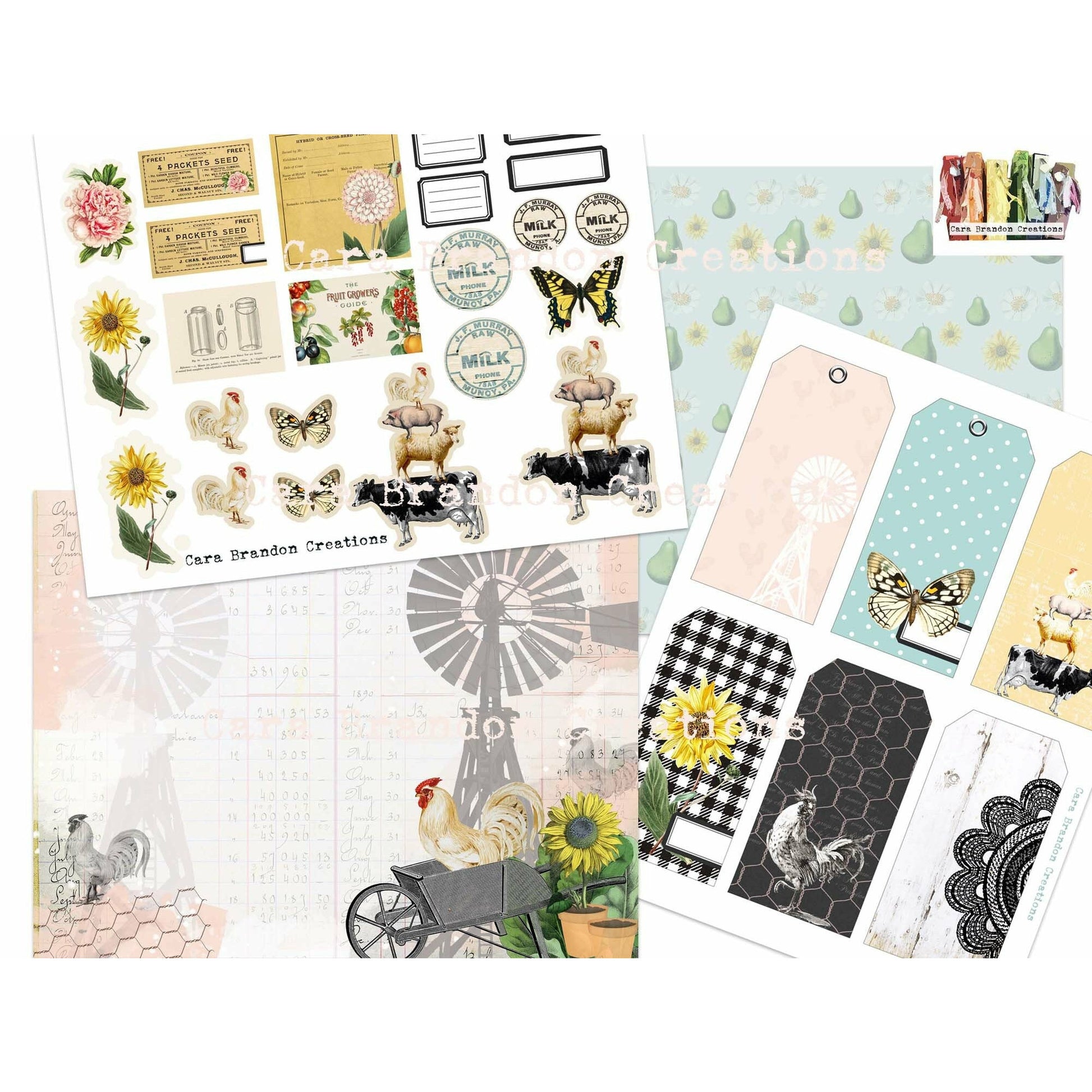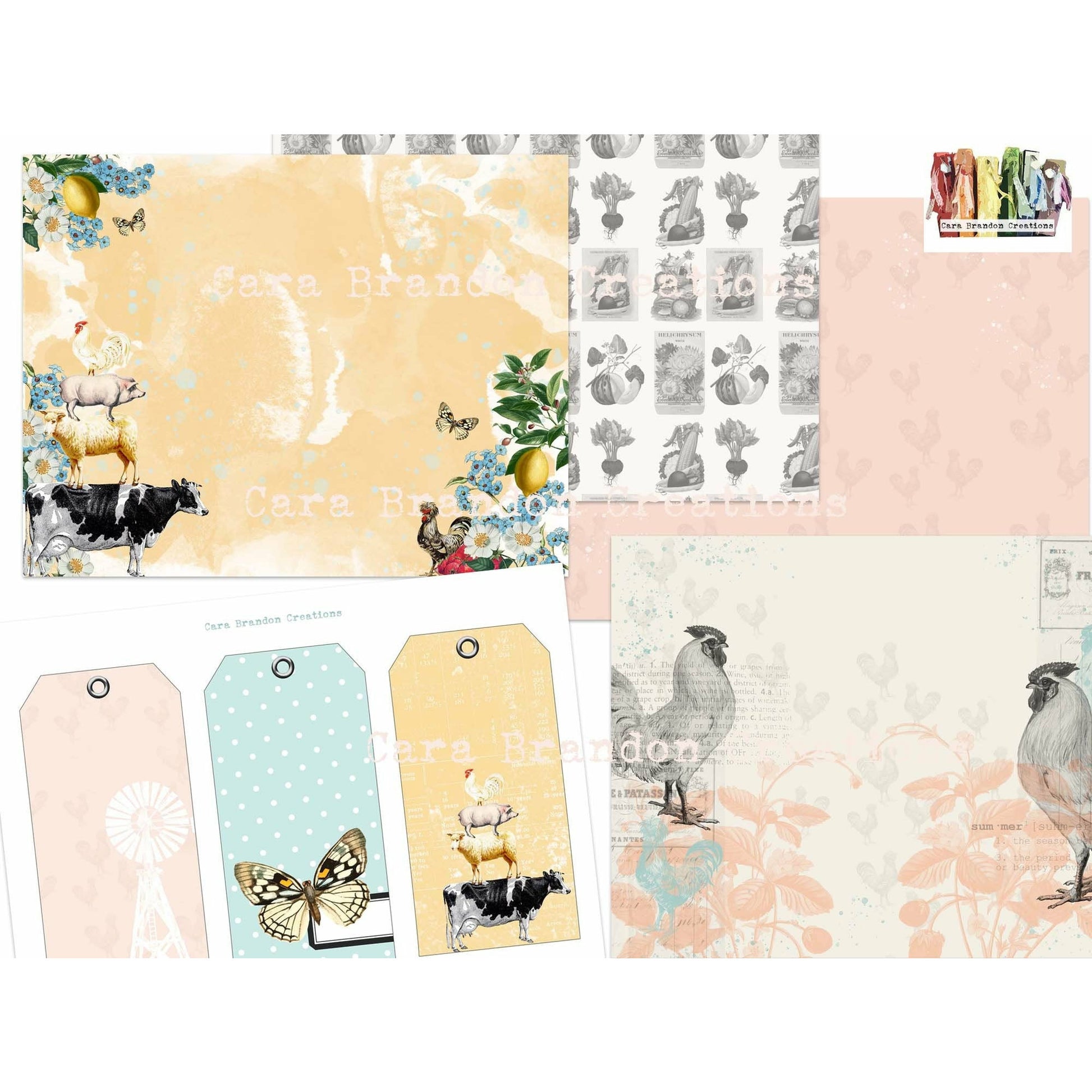 This Farmhouse digital kit has farm animals, vegetables, bright colors. It will be perfect for a fresh Farmhouse junk journal or folio. The bright colors are a fun play on the farmhouse theme.