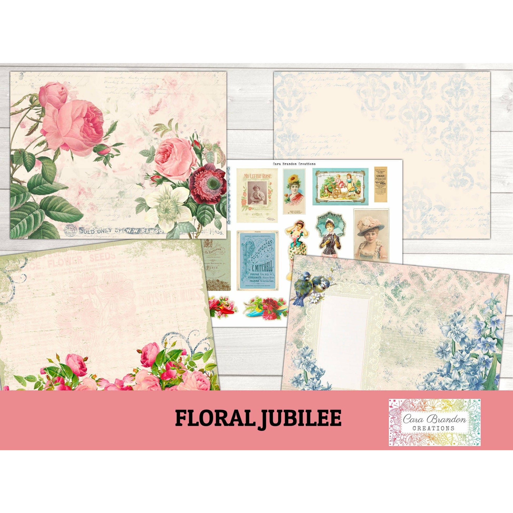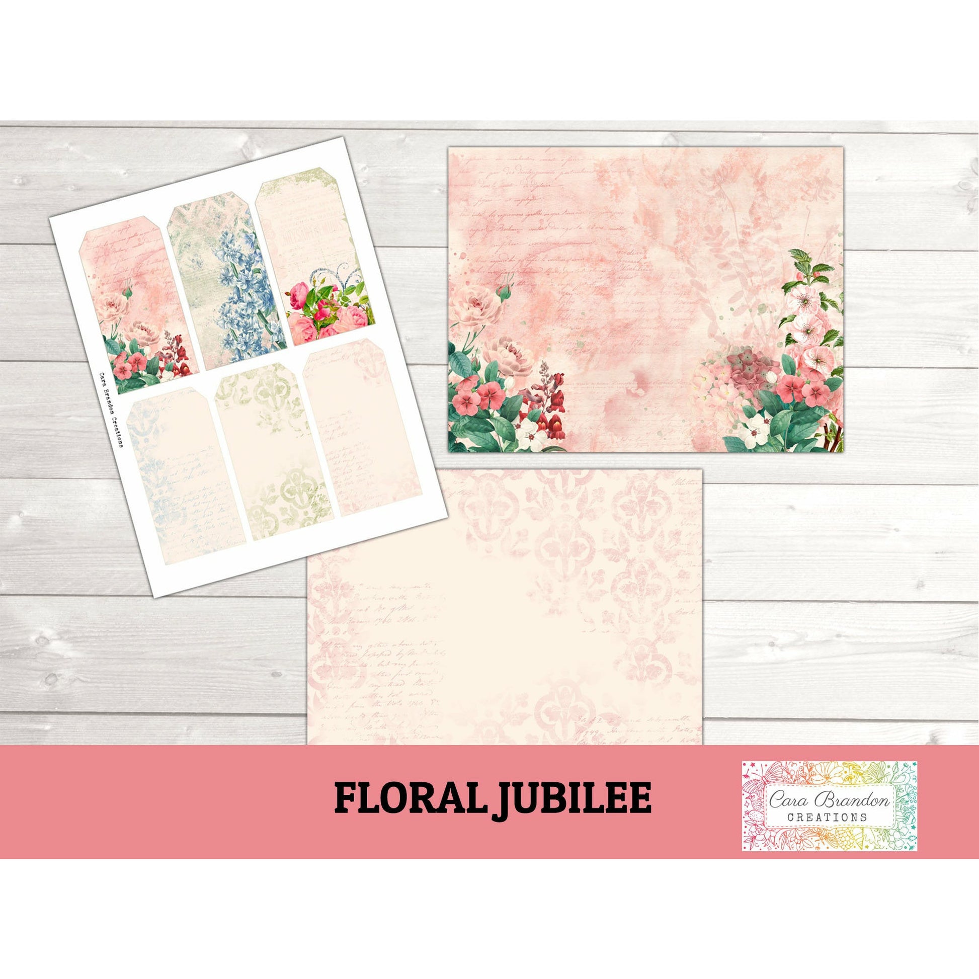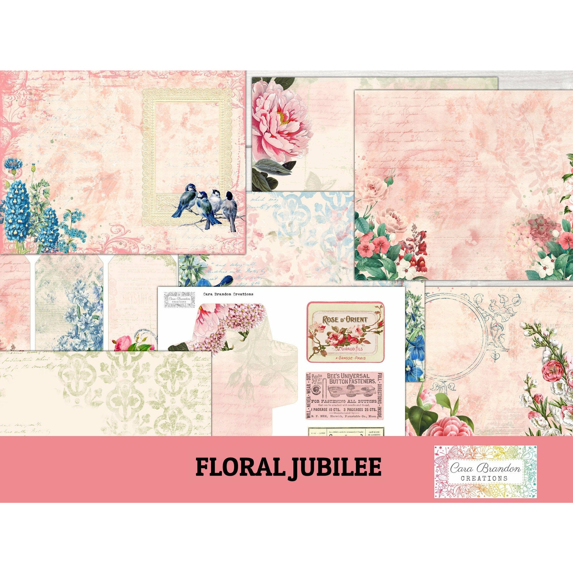 Floral Jubilee is full of Pink and Blue flowers, Mixed media style backgrounds, Perfect for spring or summer.