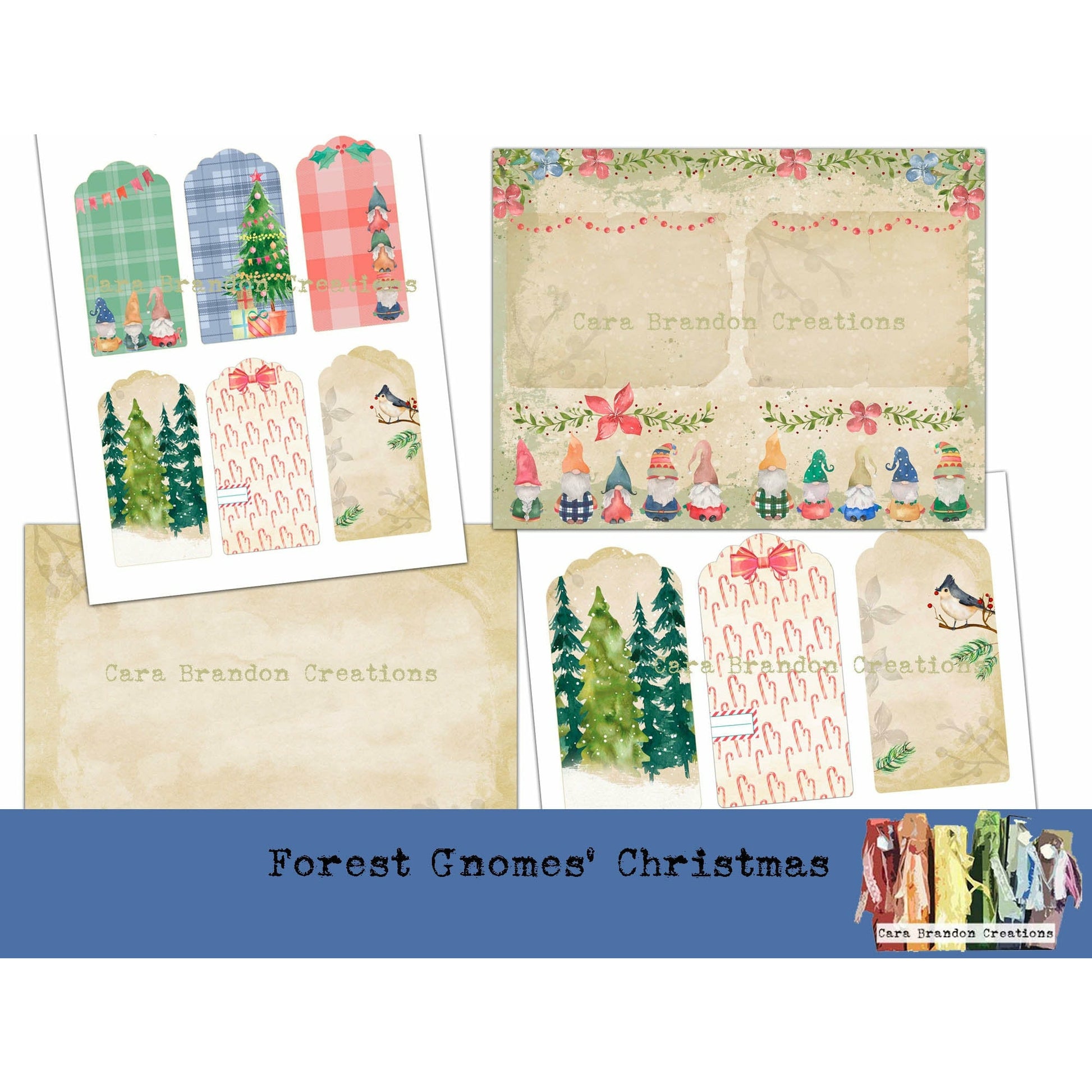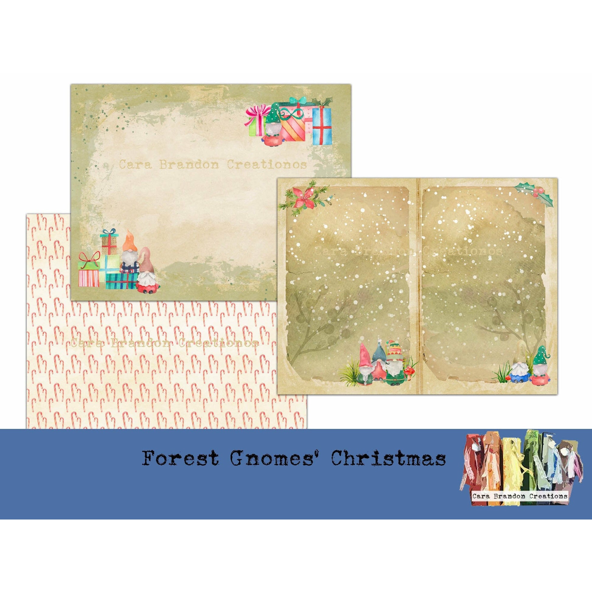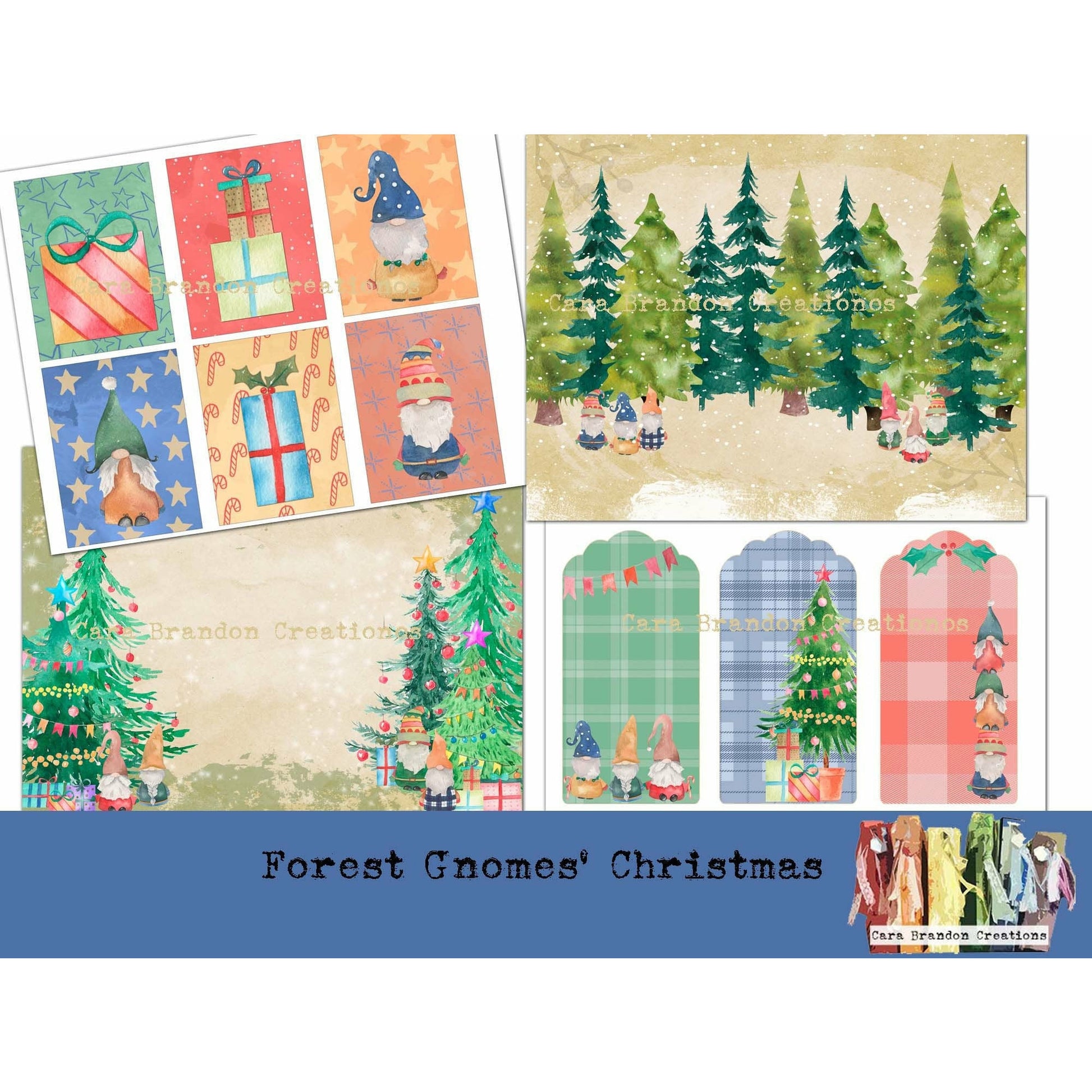 This Digital Junk Journal kit features Forest Gnomes as they prepare for their Christmas celebration. This whimsical kit is full of colorful gnomes, presents and pine trees! This kit would be perfect for a December Documented Journal, Christmas cards and other holiday crafting!