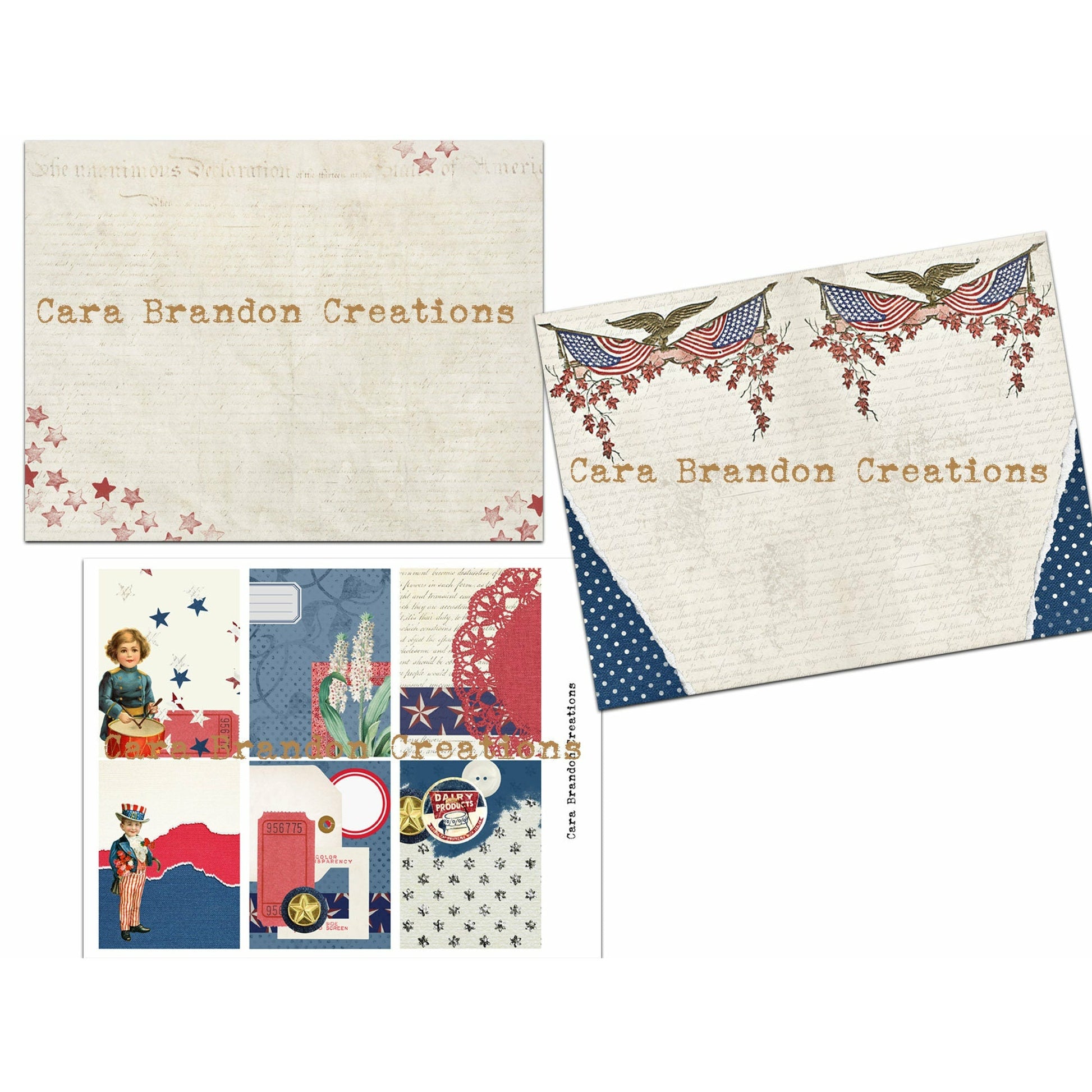 This Fourth of July, Independence Day, Memorial Day themed Junk Journal kit has Red, White and Blue, Vintage postcards and stars and Stripes! Perfect for all of your 4th of July memory keeping.