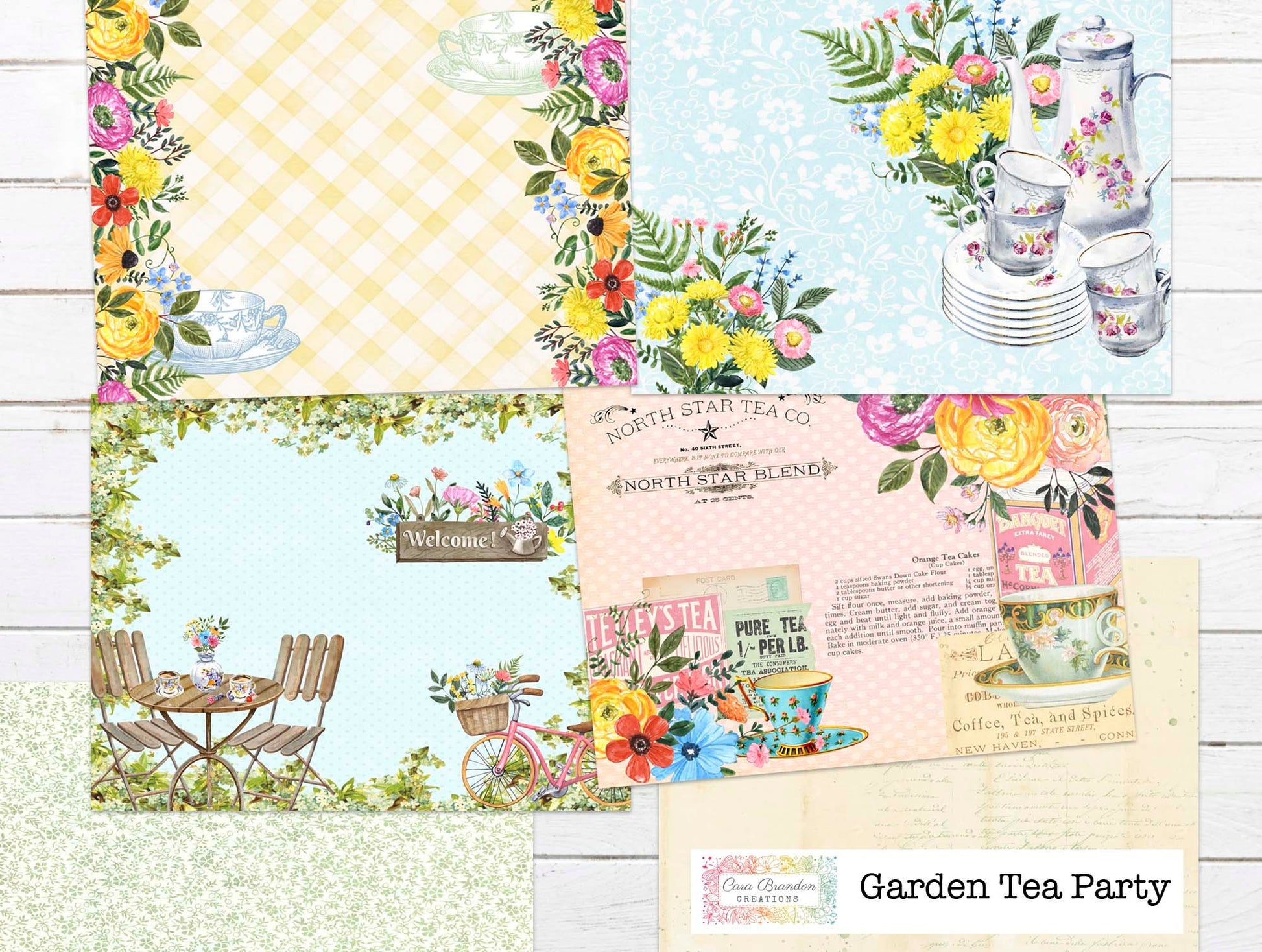 This Tea Party Kit has fun bright florals, Gardens, a cozy cottage, all to create a beautiful journal filled with Tea Party, birthday, spring and summer memories.