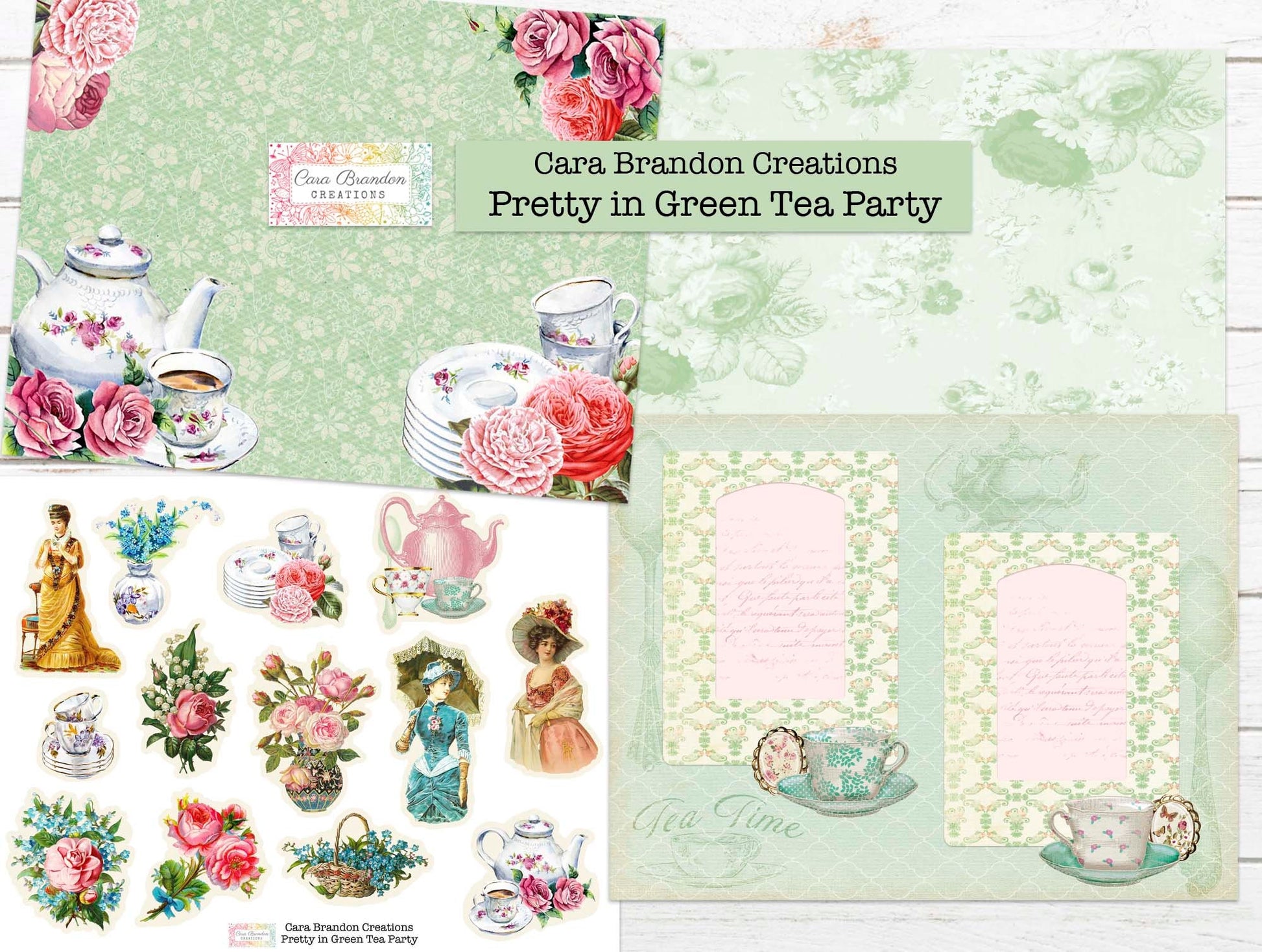 Pretty in Pink Tea Party Digital Junk Journal Kit This Tea Party Kit is full of teapots, tea cups, florals and all things pink to create a beautiful journal filled with Tea Party, birthday, spring and summer memories.