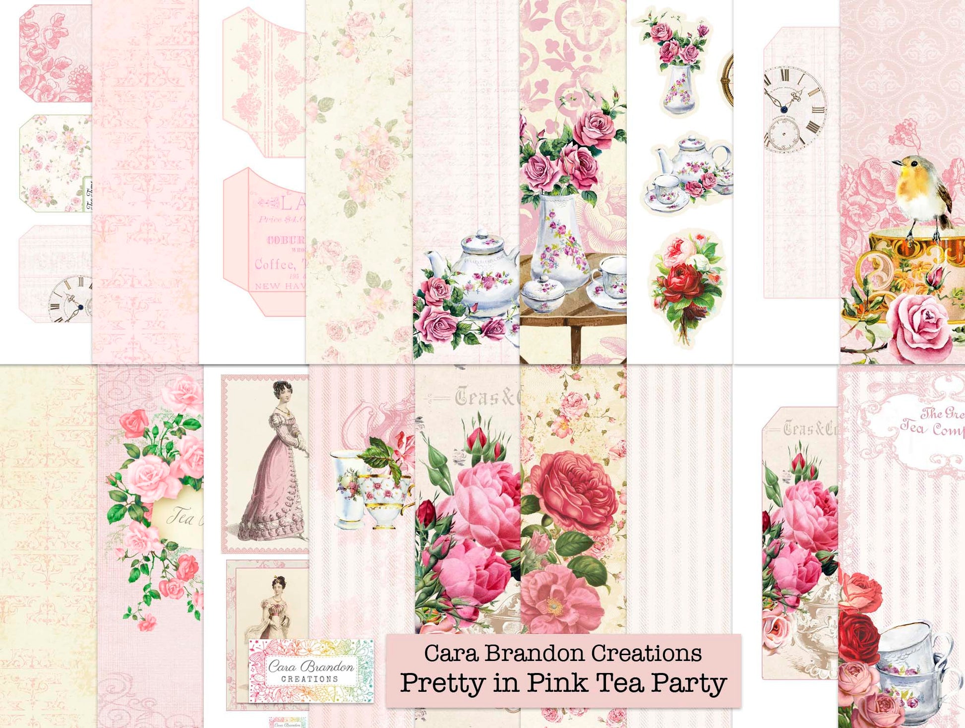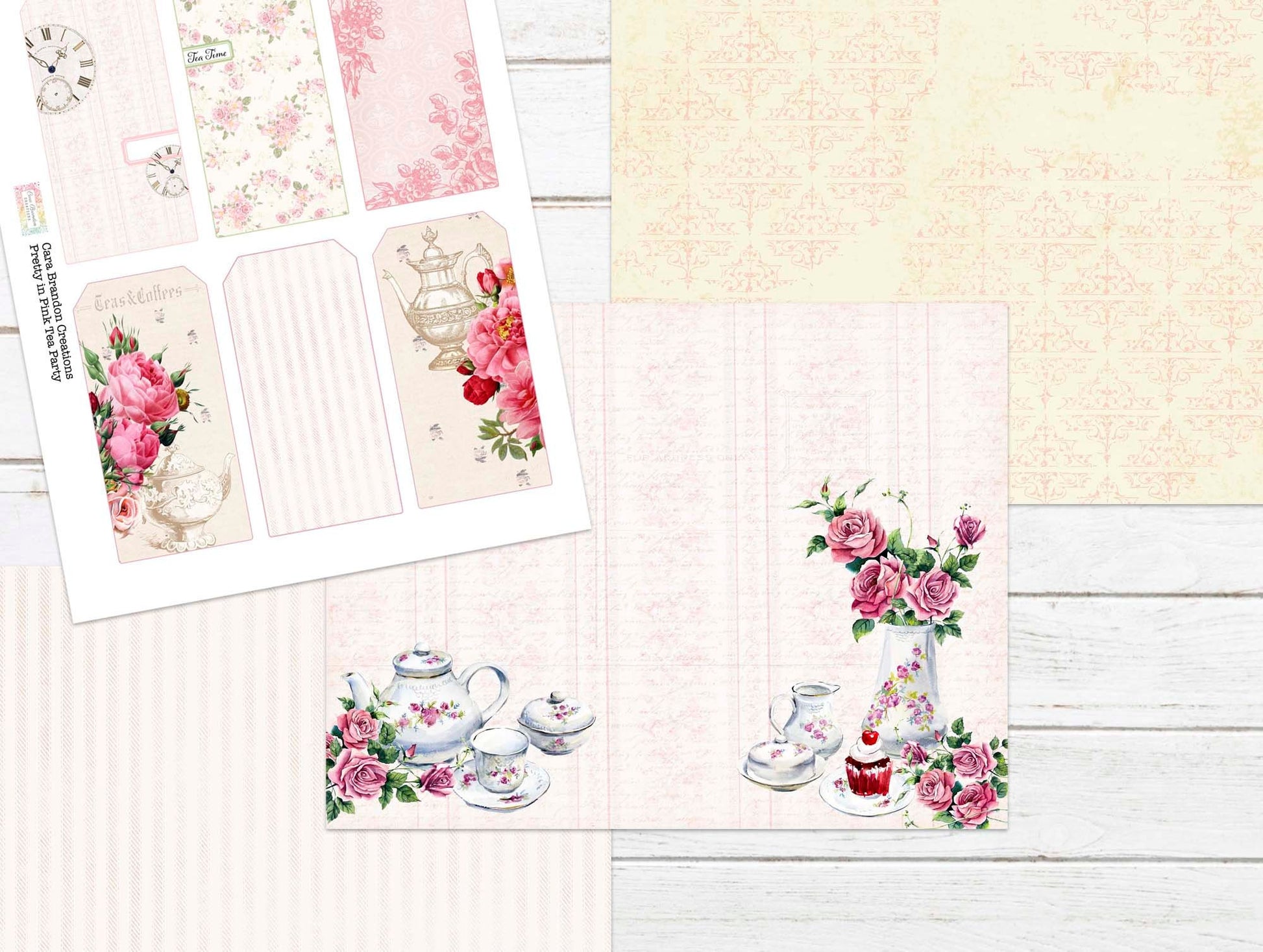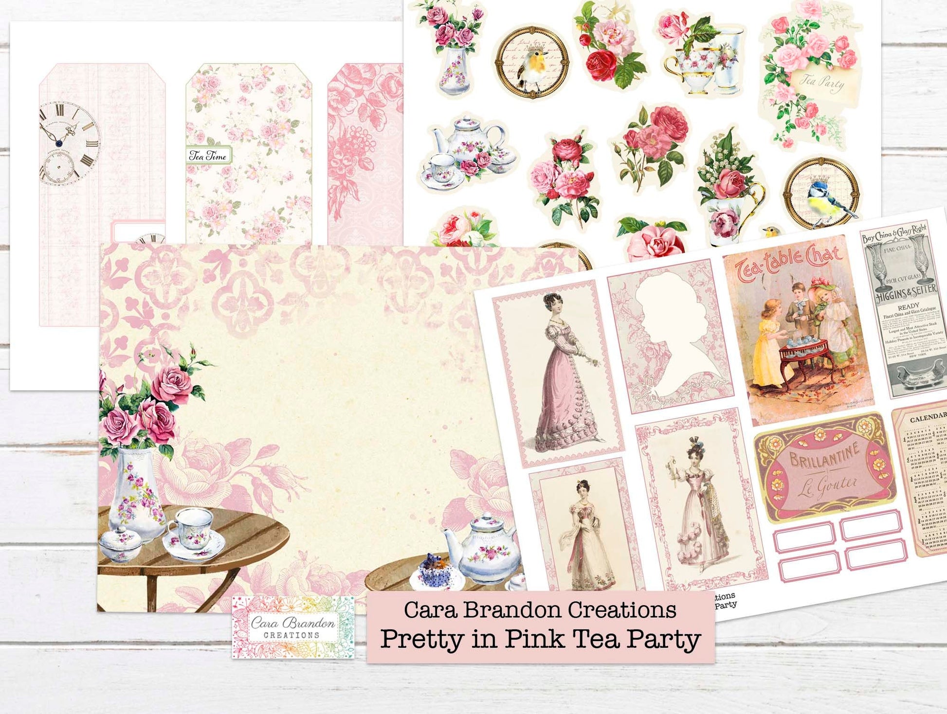 Pretty in Pink Tea Party Digital Junk Journal Kit This Tea Party Kit is full of teapots, tea cups, florals and all things pink to create a beautiful journal filled with Tea Party, birthday, spring and summer memories.