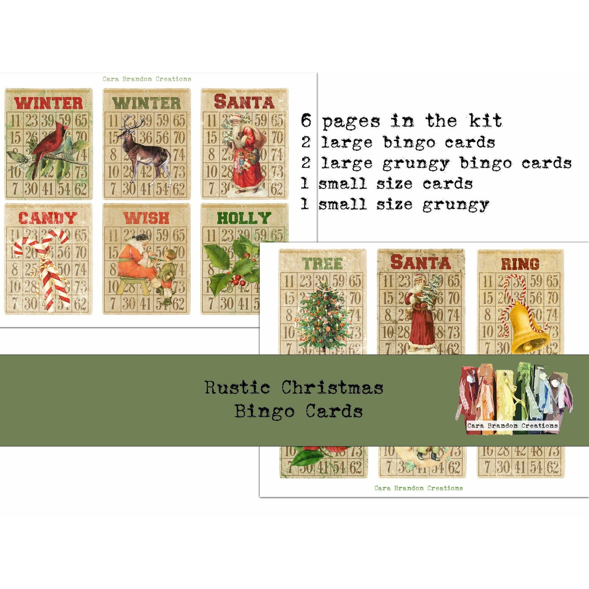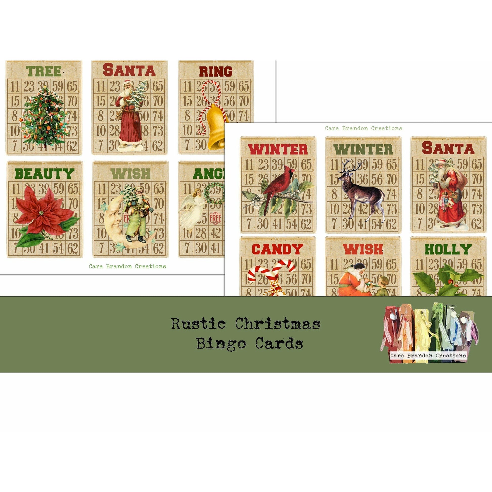 Rustic Christmas Bingo Card Kit Preview