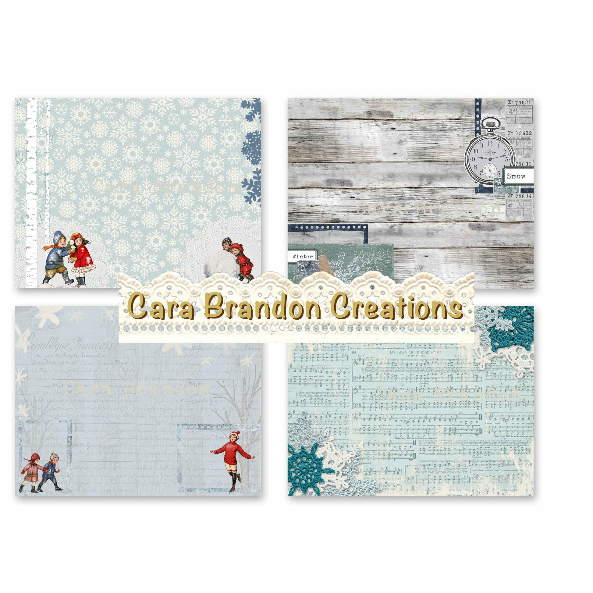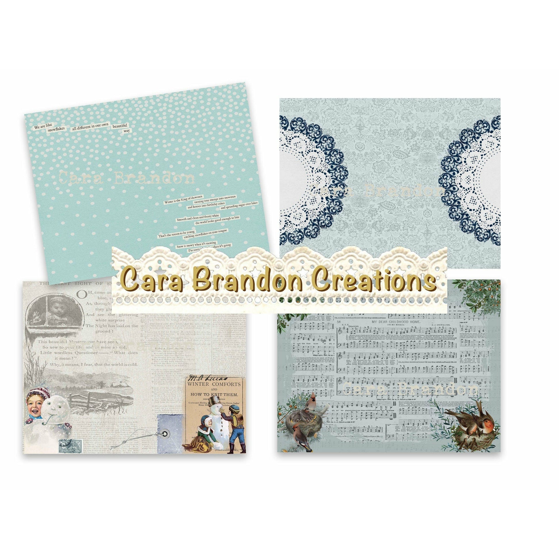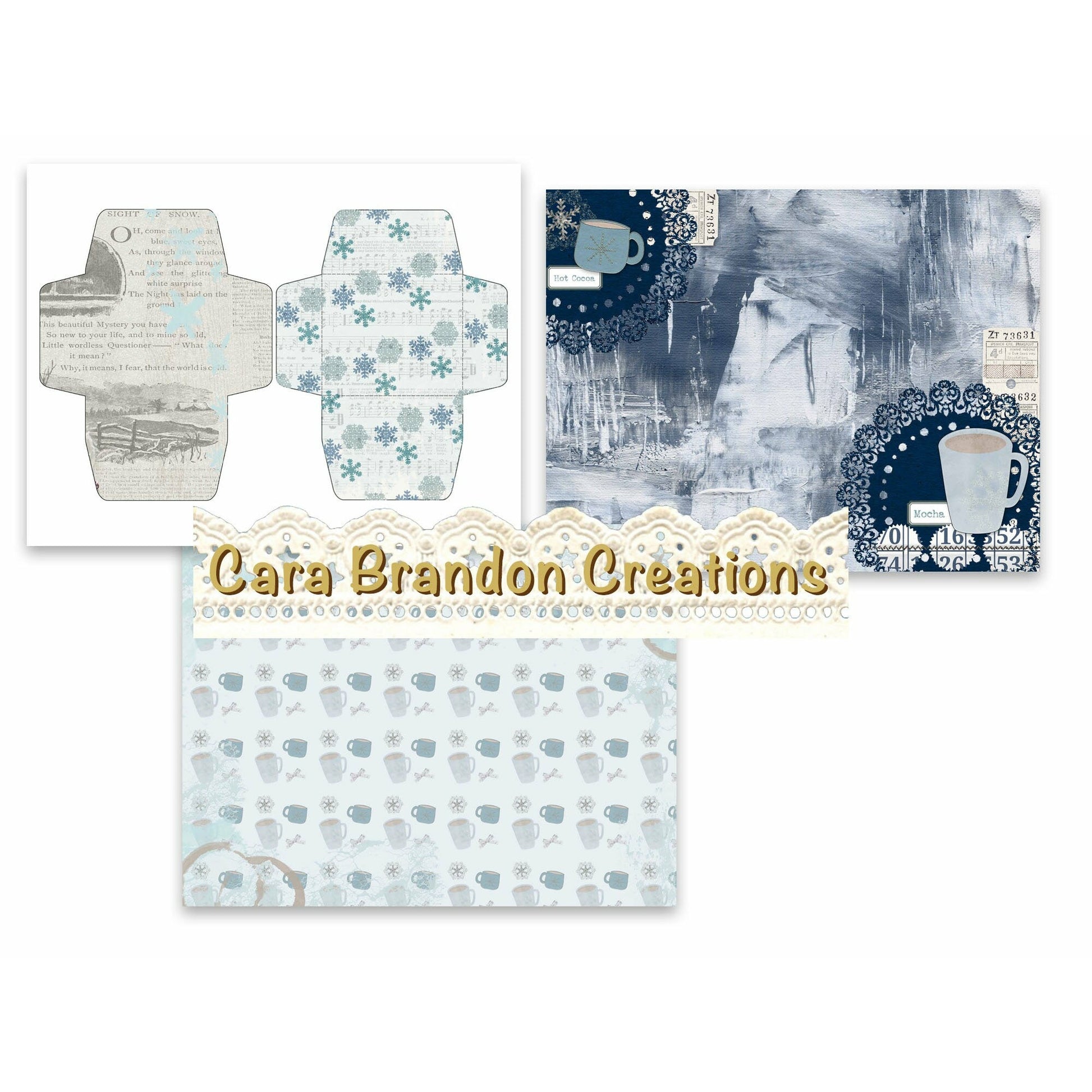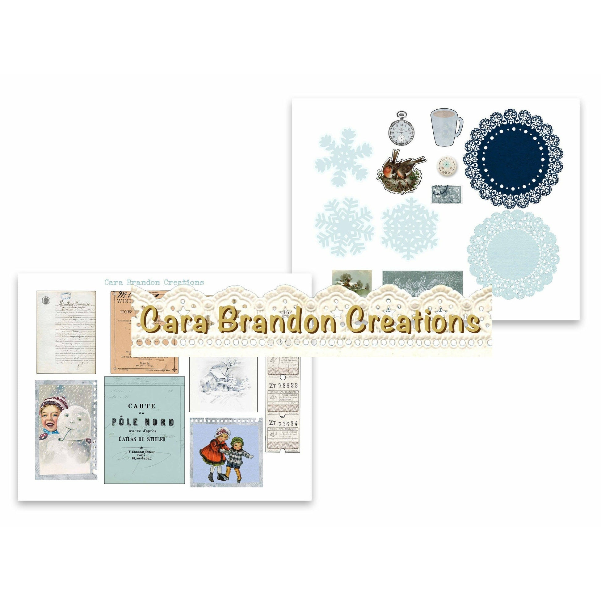This winter kit is full of dark blues, creams and whites. It has images of snowball fights and ice skating, warm cocoa and coffee. I hope you enjoy using this kit to make many Winter themed junk journals.