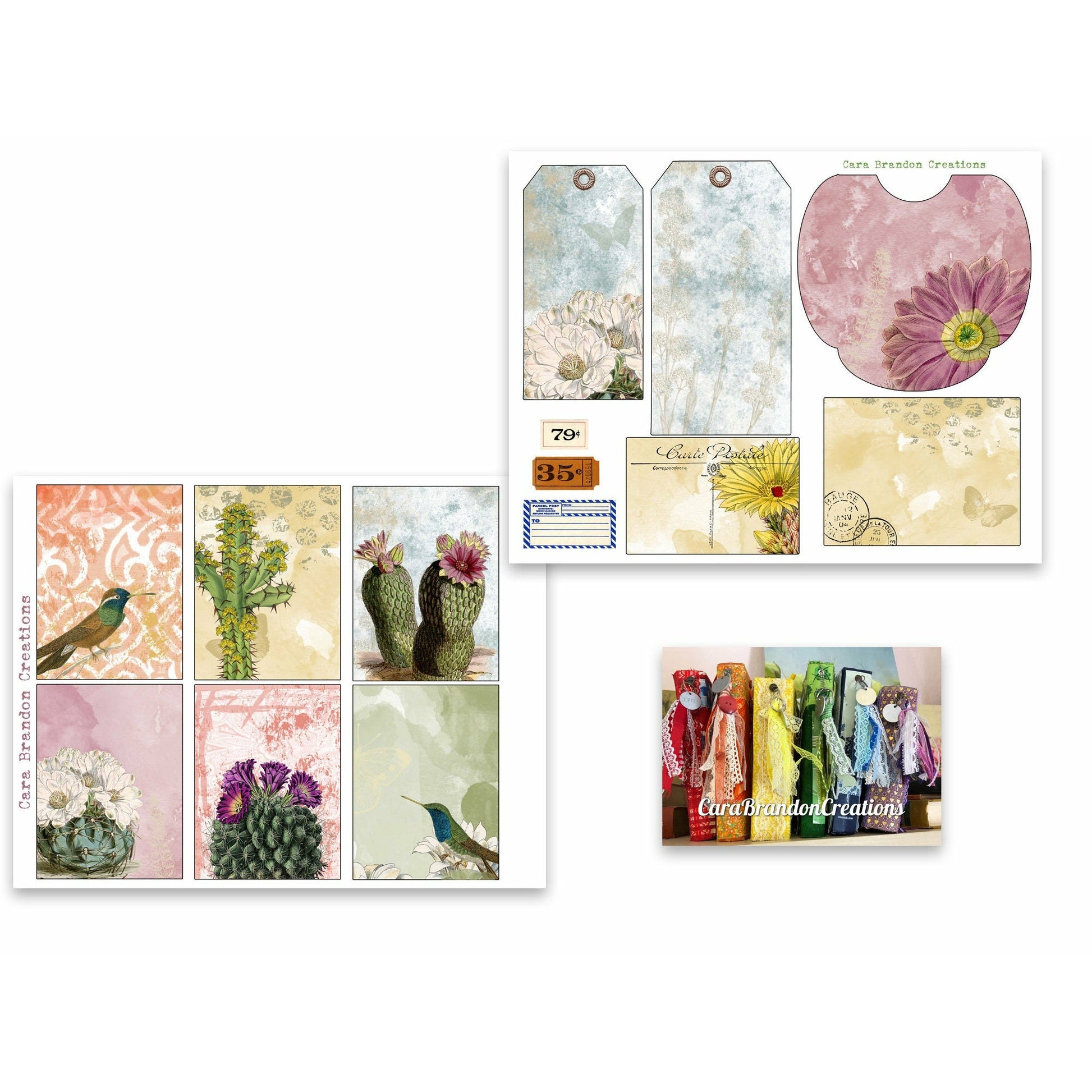 This a digital kit with beautiful features cacti images, hummingbirds, hibiscus, and butterflies.
