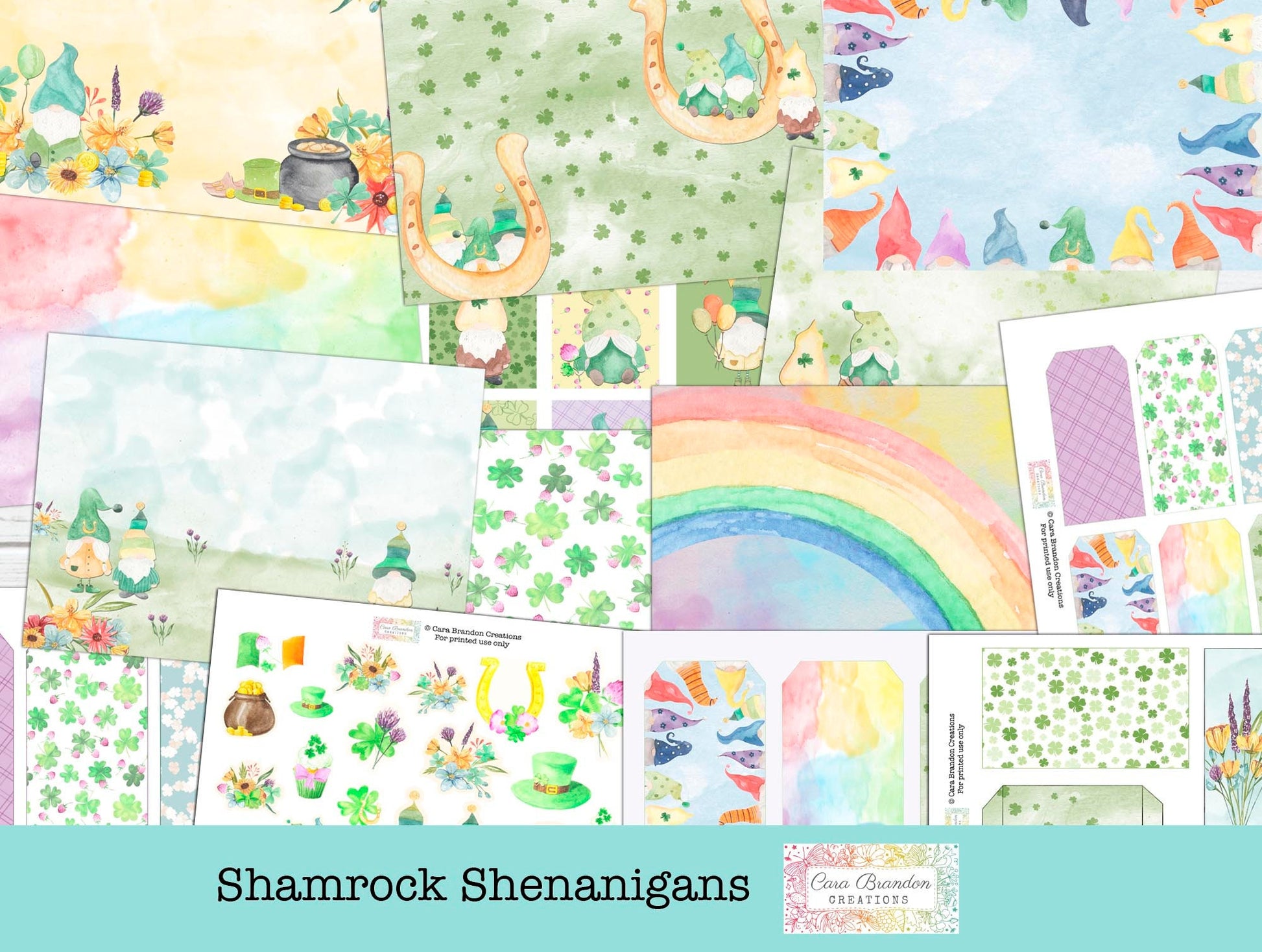This St. Patrick's Day Digital junk journal kit features Gnomes and their Shamrock Shenanigans.