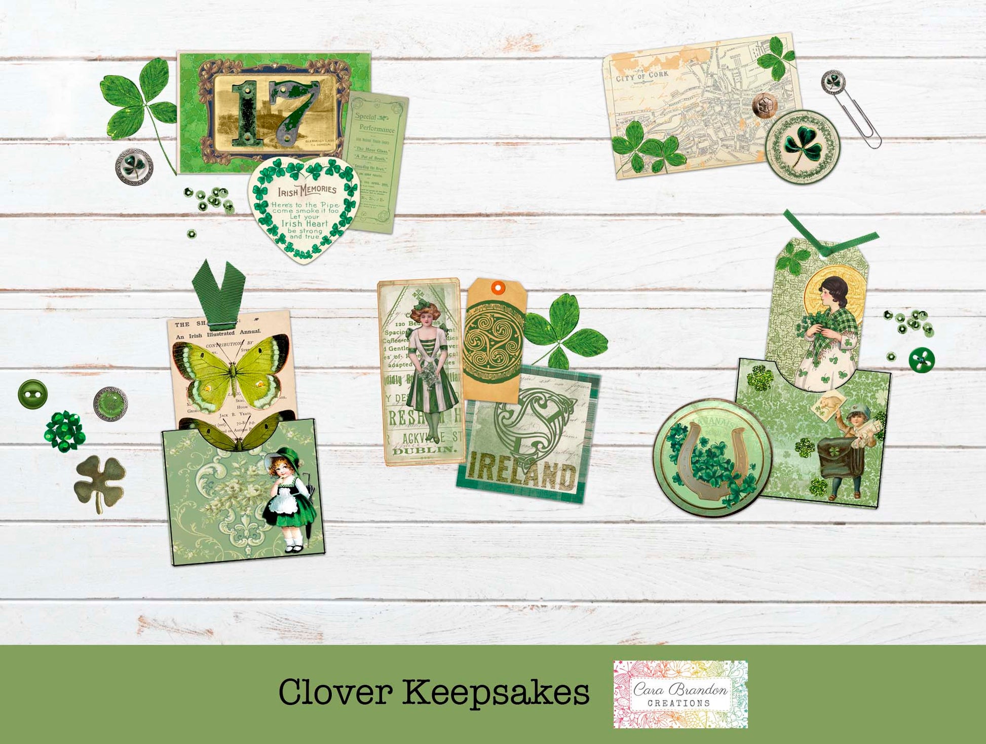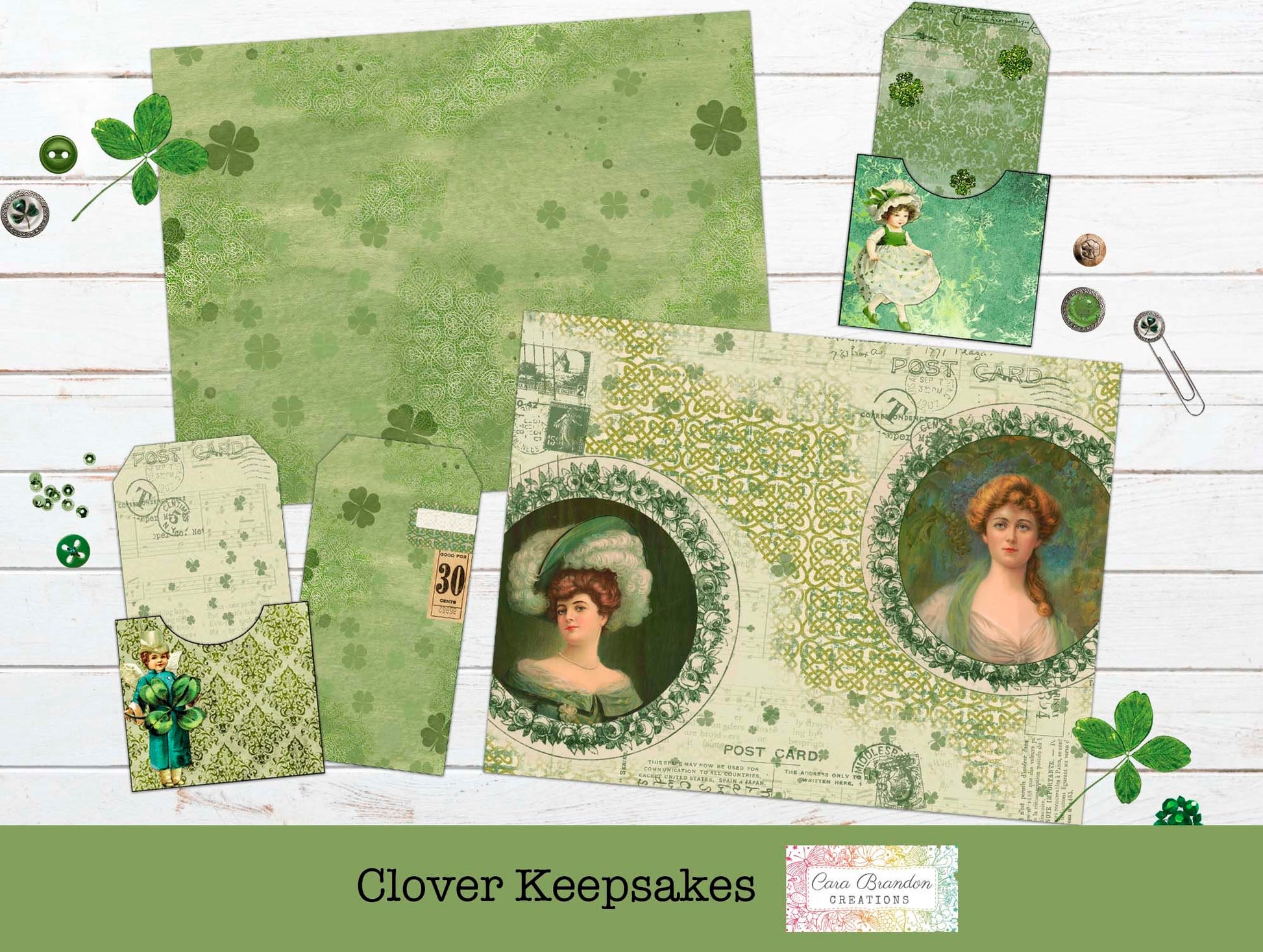 Clover Keepsakes is a St. Patrick's Day themed kit with lots of vintage images and ephemera.