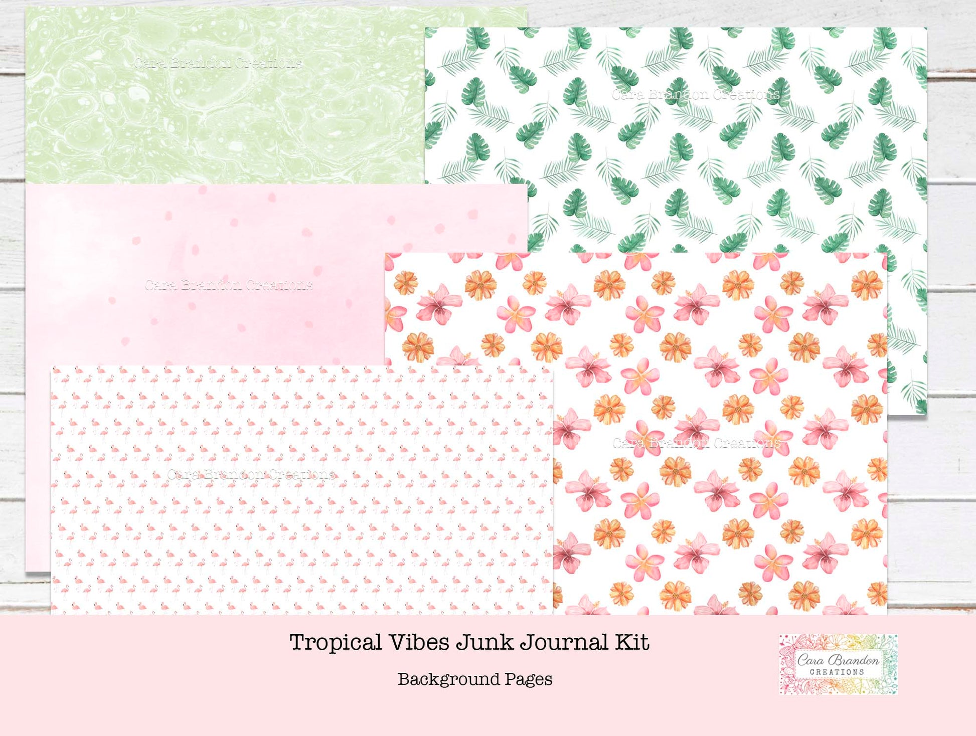 This Tropical Themed Digital Junk Journal Kit is full of Hibiscus, Palm Trees, Bright Colors and of course Flamingos! This kit will make a great backdrop to all of your summer journaling and memory keeping!